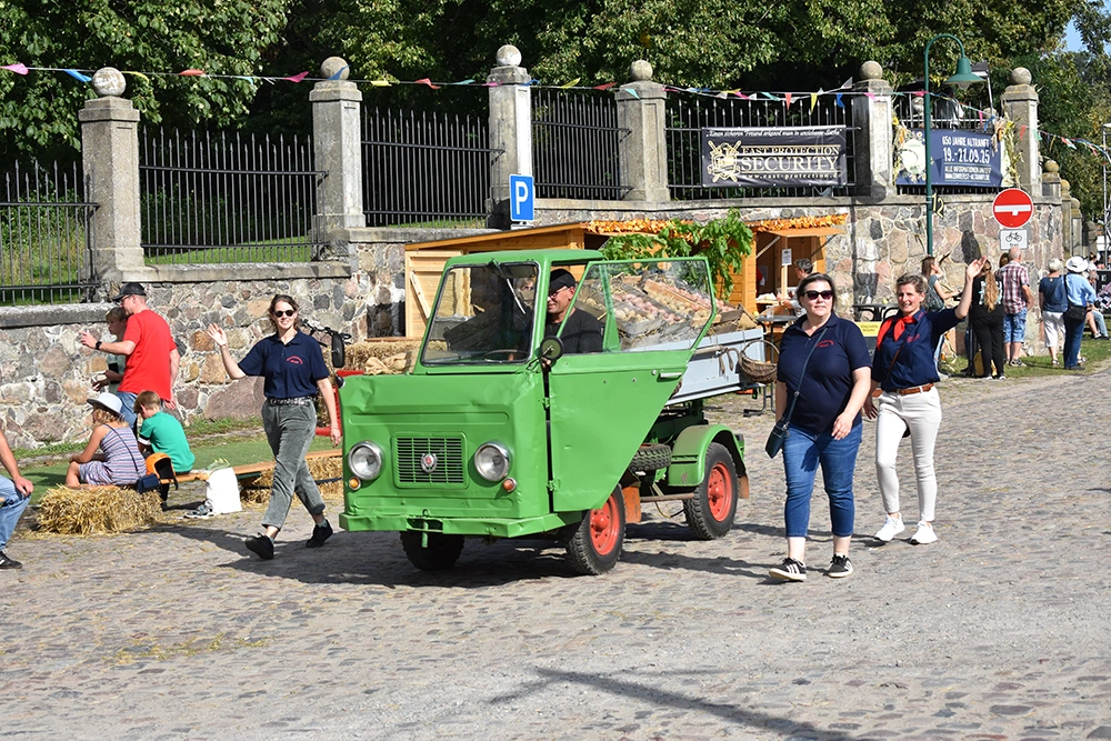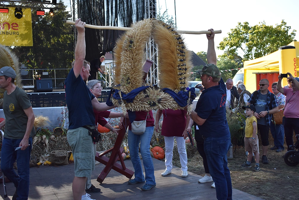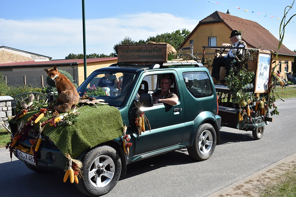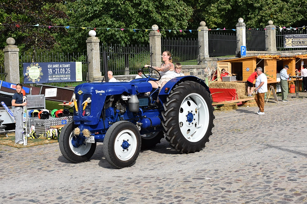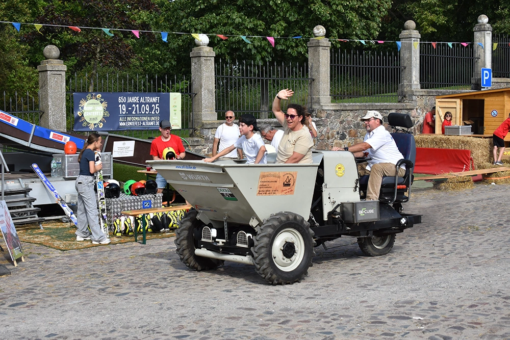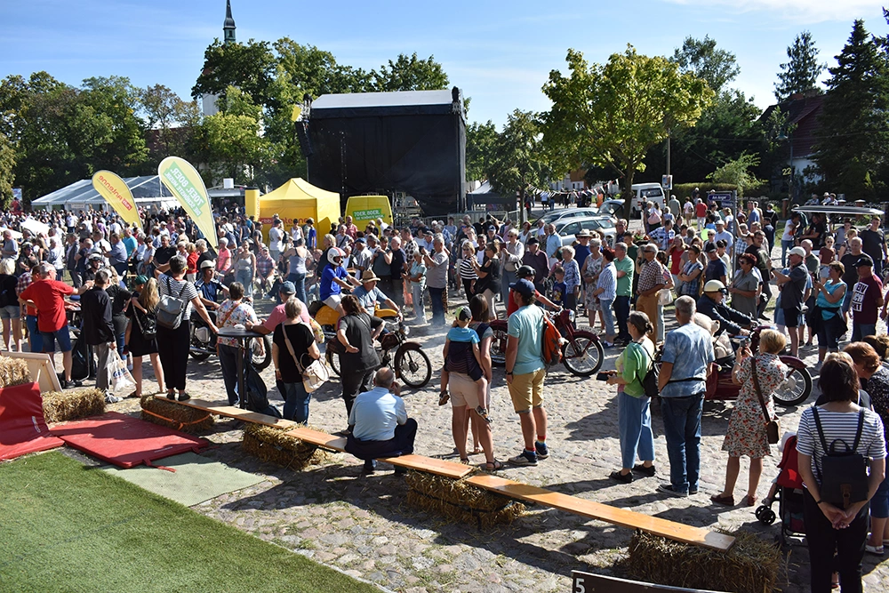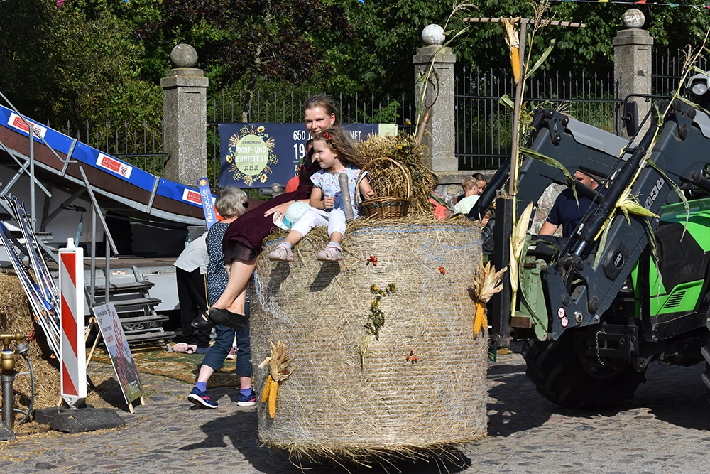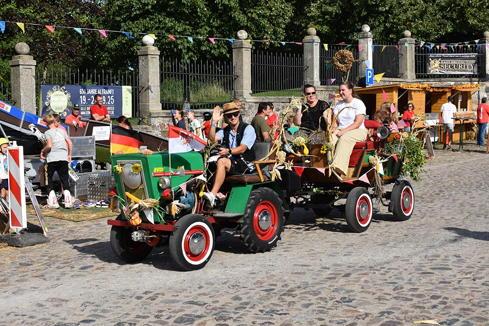 Text: Jedes Jahr findet in Altranft ein großes Erntefest statt. 2025 feierte das Dorf anlässlich seiner Ersterwähnung im Landbuch Kaiser Karls des IV. sein 650. Jubiläum (der Ort ist mit Sicherheit schon vor 1375 besiedelt gewesen). Aus diesem Anlass wollte man noch eine Nummer größer feiern und bewarb sich erfolgreich auf die Austragung des Brandenburgischen Dorf- und Erntefestes.