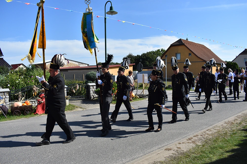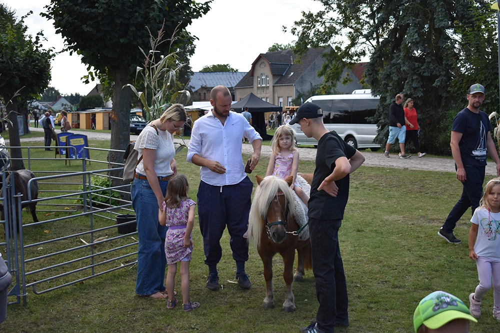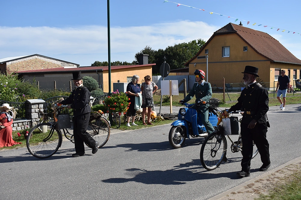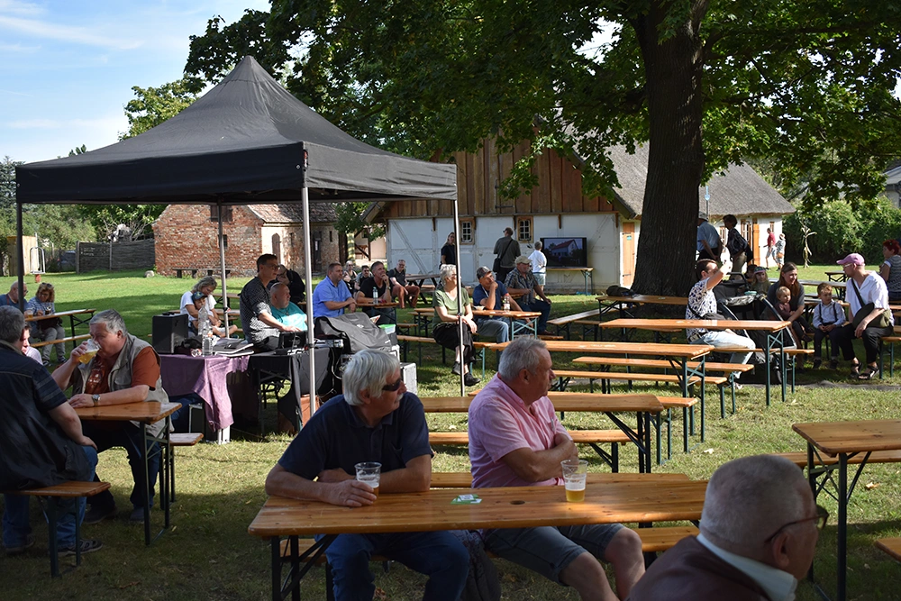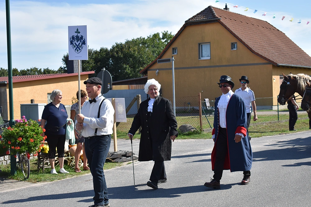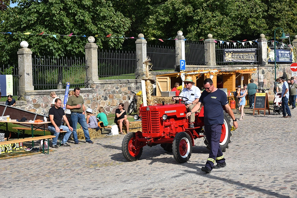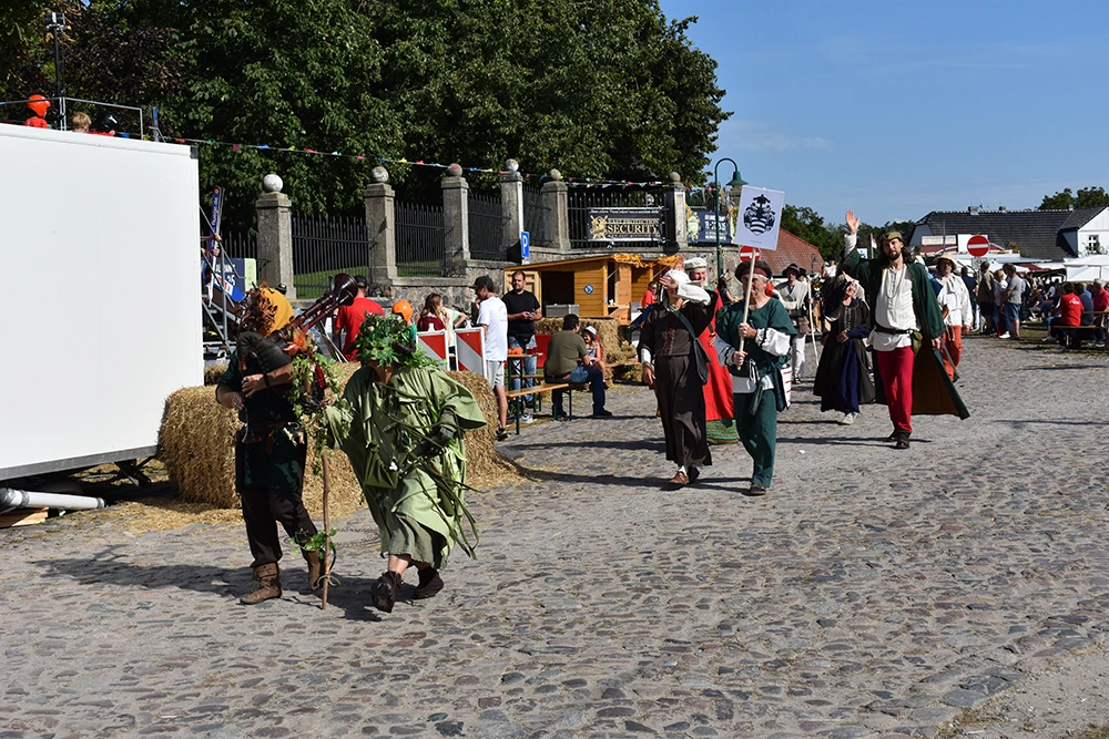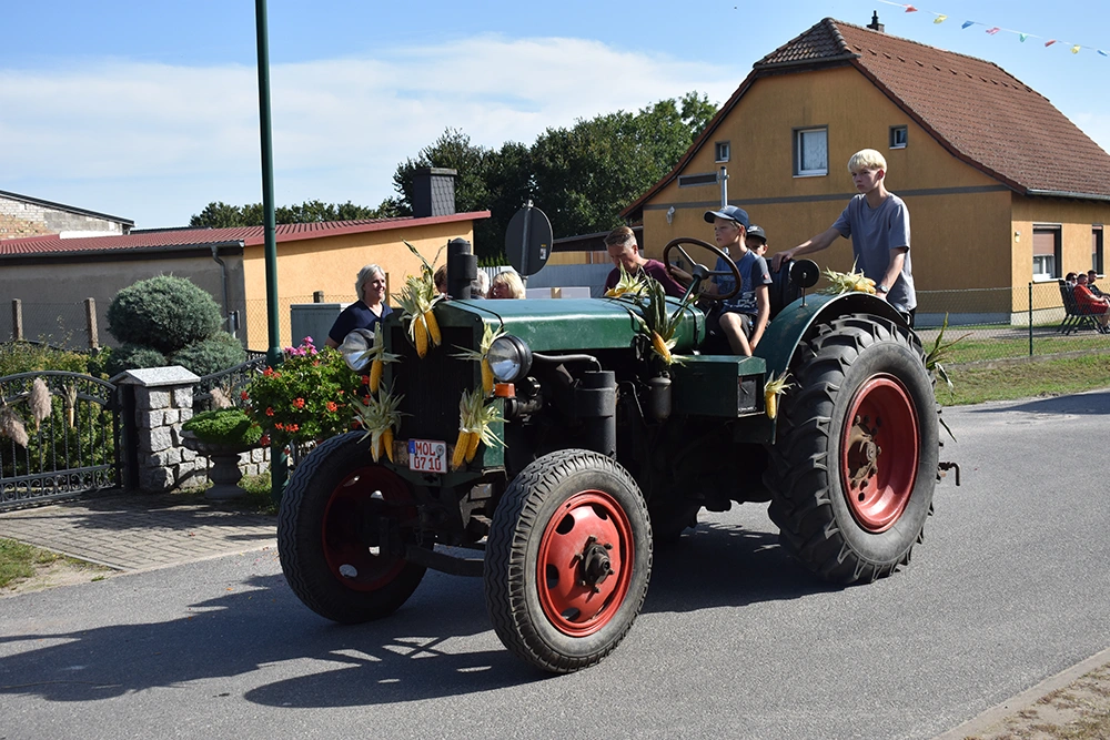 Text: Jedes Jahr findet in Altranft ein großes Erntefest statt. 2025 feierte das Dorf anlässlich seiner Ersterwähnung im Landbuch Kaiser Karls des IV. sein 650. Jubiläum (der Ort ist mit Sicherheit schon vor 1375 besiedelt gewesen). Aus diesem Anlass wollte man noch eine Nummer größer feiern und bewarb sich erfolgreich auf die Austragung des Brandenburgischen Dorf- und Erntefestes.