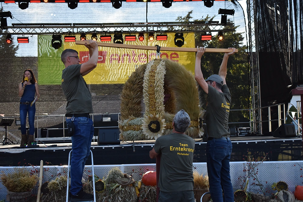 Das Landeserntefest wurde bei bestem Wetter und in heiterer und friedlicher Stimmung als dreitägiges Geschehen vom 19. – 21. September in ganz Altranft auf mehreren Bühnen und Plätzen ausgerichtet. Zu Gast waren Menschen aus ganz Brandenburg, Ministerpräsident Woidke, die Landfrauen, der Landesbauernverband und viele mehr. Vor allem aber feierten die Altranfter selbst. Sie hatten ihr Dorf schon Wochen vorher geschmückt, all ihre Vereine mobilisiert, im Ortsbeirat geplant und angeschoben und genossen nun miteinander eine fröhliche Zeit. Da die Stadt Bad Freienwalde die Organisation die Tourismus-GmbH mit dem Management beauftragte, konnten sich alle nach Kräften einbringen, ohne mit so dem großen Event, bei dem bis zu 15.000 Besucher gezählt wurden, überfordert zu sein.